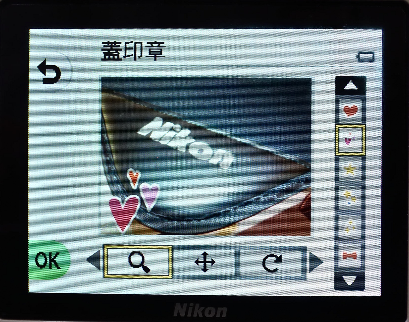 6.拍攝照片後,您可透過全新的「印章」功能,以繽紛的心形圖案、星星貼紙及其他有趣圖案裝飾照片。