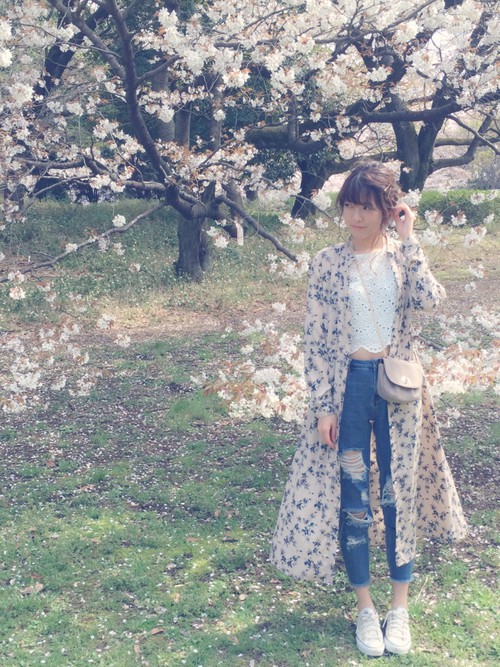 跟妞編輯一樣是碎花控的請舉手!春天的夢幻單品就是碎花雪紡長版外套拉~白色素T、基本款丹寧,春遊定番就這樣輕鬆完成啦!