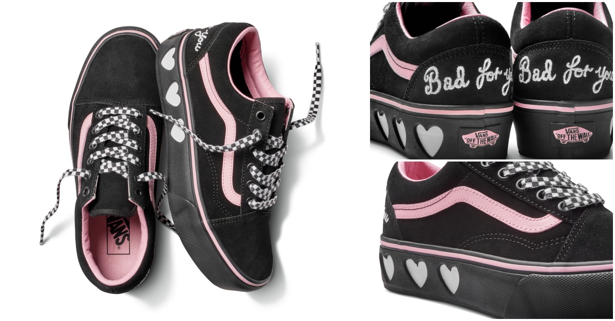 這次Vans×Lazy Oaf 聯名系列除了服飾外還有鞋款,聯名鞋款以愛心,黑、粉紅色為基底,加上滿版的經典圖樣,打造出很萌卻又很潮流的女孩魅力!服飾以Lazy Oaf鮮明圖樣與色系為主,再用Vans經典格紋點綴,兩品牌特色完美結合,你說說~女孩們怎能不心動?!(記帳中)