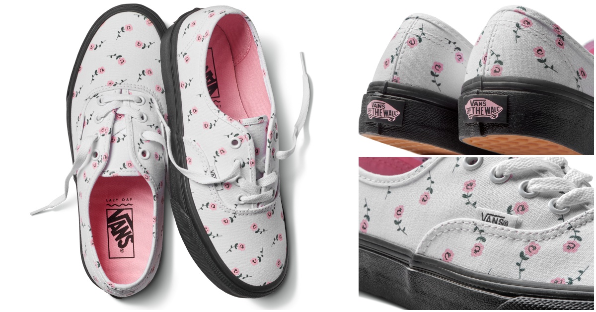 Vans×Lazy Oaf Collection 共推出經典四種鞋型。其中最受女孩喜愛的Authentic鞋款,以黑白對比配色,鞋身上的用迷人的花朵圖案點綴出清新感,展現不同以往的女孩風格。