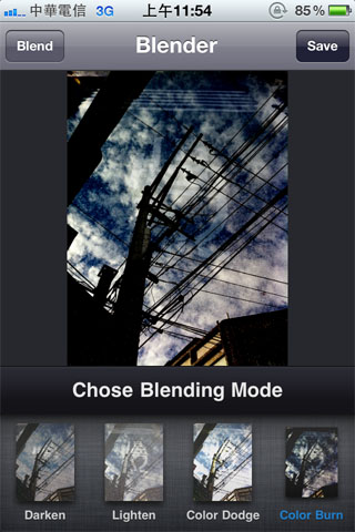 要調整照片模式有兩個方法,第一個是點選左上角的Blend按鈕,