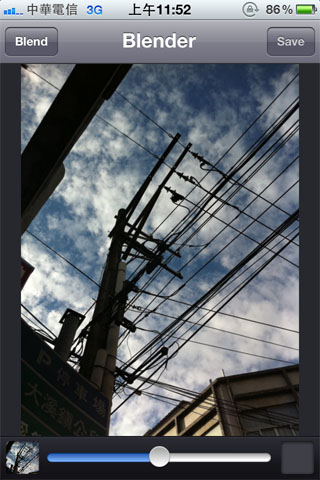 選擇確定之後,只要將畫面向下滑一下,或是再點選右上角Blend