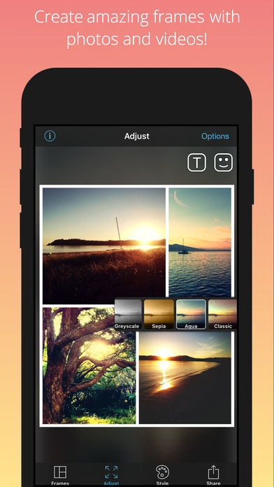 經典照片拼圖App終於再次限免!內建73個可調節的相框,每張照片拼圖最多可放入9張照片或影片,還能在拼圖上加入文字標籤或貼紙、改變照片形狀與濾鏡。