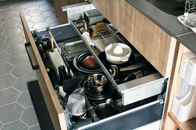 有著這個觀念,搬到新家後,我不是一股腦兒拆箱歸位。首先,我依照料理動線,把重點抽屜要收的物品先定義出來,這點很重要。