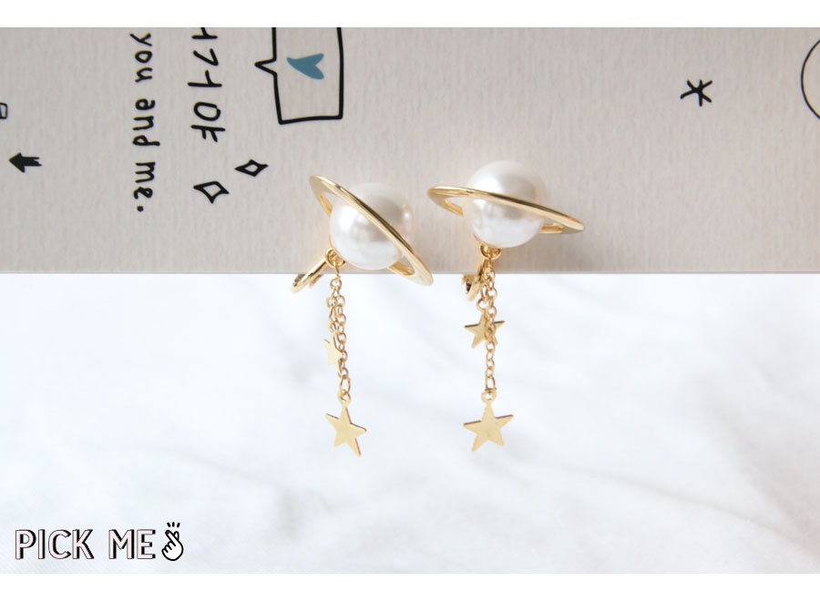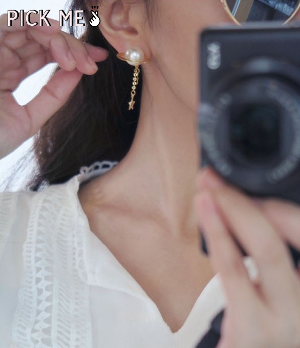 這款超吸睛的行星夾式耳環,就是要讓你可愛得嫑嫑的,珍珠小行星配上垂墜星星,簡單卻特別。