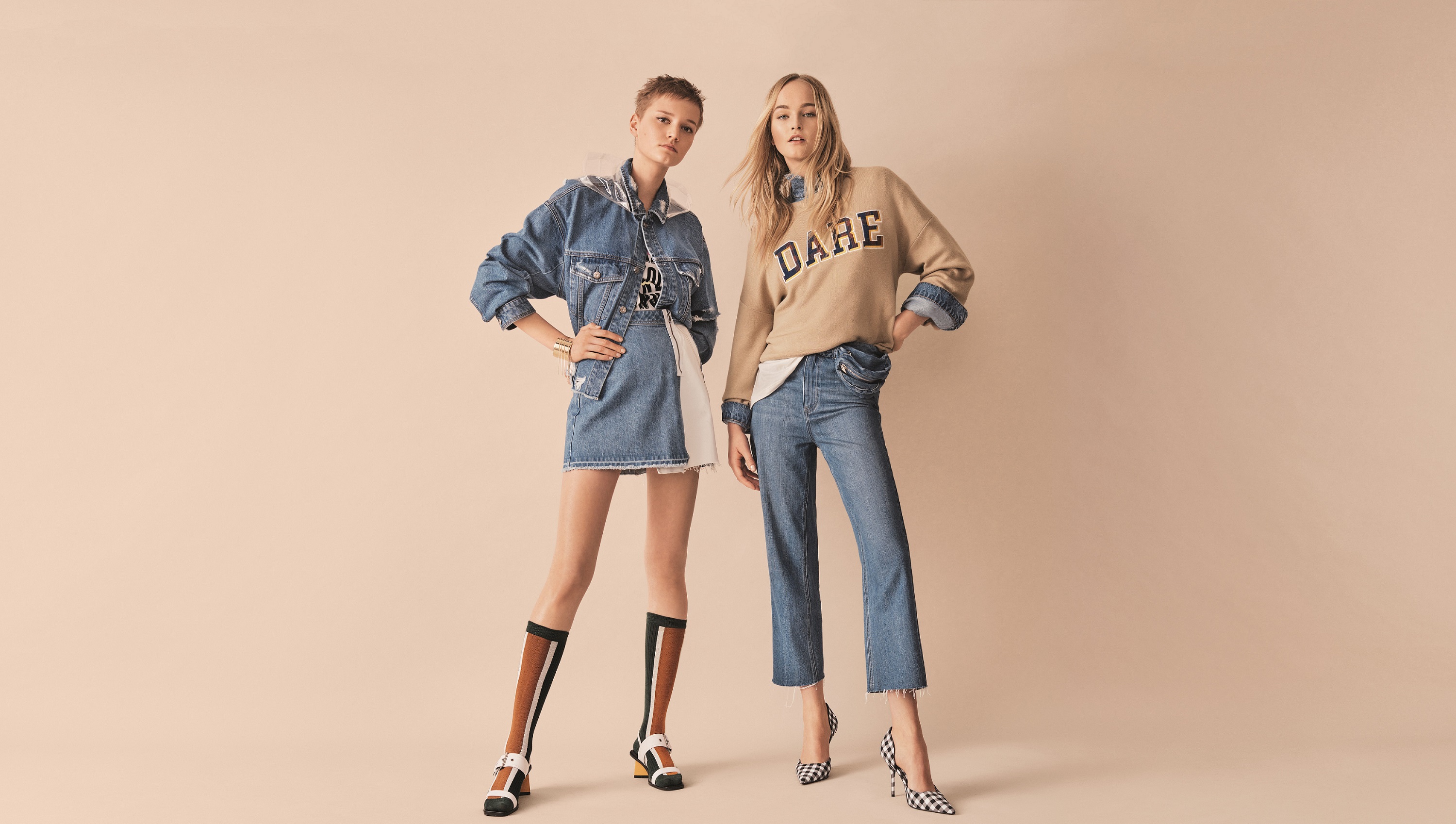 DENIM 丹寧不敗系列中,MANIFESTO 牛仔宣言系列透過異材拼接、印花設計,呈現當代玩樂主義者的時尚態度,採用義大利羅貝凱托科寧杜諾的紡織廠Candiani Denim的頂尖牛仔面料、簡約的廓型、做工精緻的漆質鈕釦等細節,讓衣櫥裡的基本款也有出眾型格。面對即將到來的炎炎夏日,OFF-BEAT POOLSIDE 泳池邊風情系列,夏季風格的熱帶印花圖騰佈滿整件服裝,甚至由內至外的刺繡細節也可在襯衫上找到。水洗效果出現在各式單寧款式,從水洗至漂染、重水洗、酸洗,到破壞效果,刷破後再以補釘修補。牛仔長褲包括各式版型,超緊身、修身、合身、直筒等。
