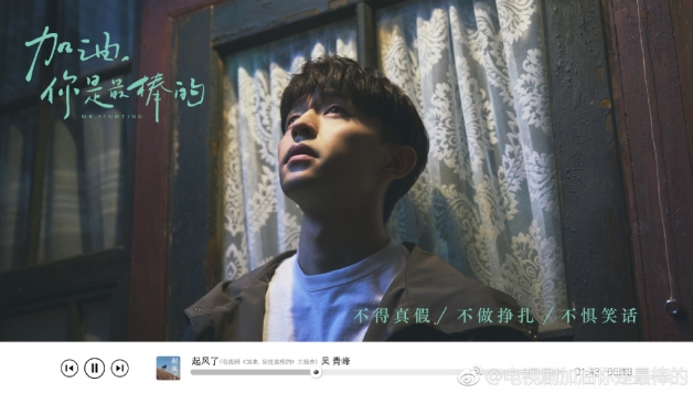 《加油,你是最棒的》主題曲則由最強新人兼貓總吳青峰演唱〈起風了〉,青峰也說:「要去翻唱一首有兩個很棒版本的歌,壓力很大!」但聽到青峰的歌聲和歌詞的起承轉合,真的有種在心~裡~起~風的感覺,「峰」味十足,縱有疾風起,人生不言棄,吳青峰的〈起風了〉致敬給每個努力生活的你,加油,你是最棒的!