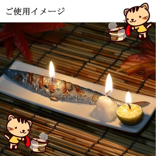 還有專為祭拜寵物所設計的秋刀魚蠟燭,也是一點都不馬虎,不但魚身做得精緻逼真,還附上了鹽塊、檸檬和專用盤子,應該不會還沒點火就被家裡的喵星人叼走吧?(貓老大我是靠嗅覺才不會被騙勒)