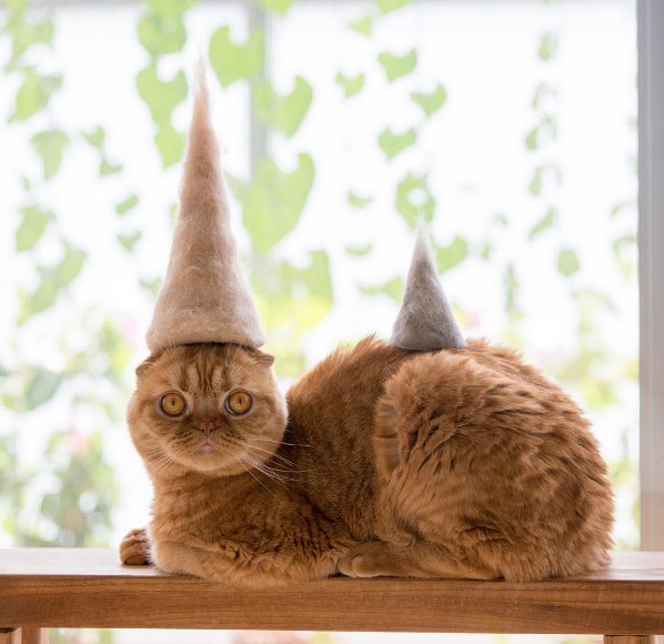 Ryo Yamazaki飼養了三隻貓摺耳貓:Nya、Maru和 Mugi。最近替他們打理廢毛時,靈機一動把梳下來的毛在愛貓頭頂堆成小山,搭上貓咪們淡定的表情,讓人忍不住笑到肚子痛啦!