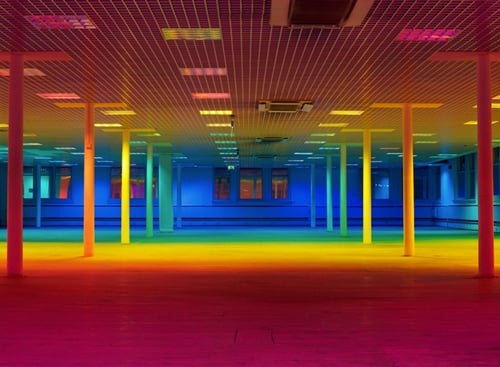 「Your Colour Perception」則是妞編輯最喜歡的一個作品,用各種顏色的光線照亮整個5000平方英尺的空間內,雖然空無一物,但是透過這些勻稱的光線渲染之後,彷彿替屋內穿上了一件層次豐富的彩衣,讓觀賞者的心情也跟著開朗了起來。