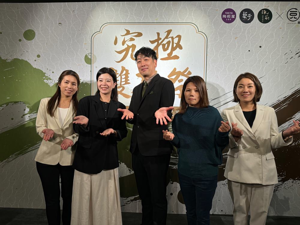 (左起)陶板屋事業處總監鄭雅文、市場行銷一部總監蘇妍妮、一〇八抹茶茶廊總經理山本將人、阪前事業處副總馮嘉雯 、藝奇事業處總監蔡淅屏。(圖/王品集團提供)