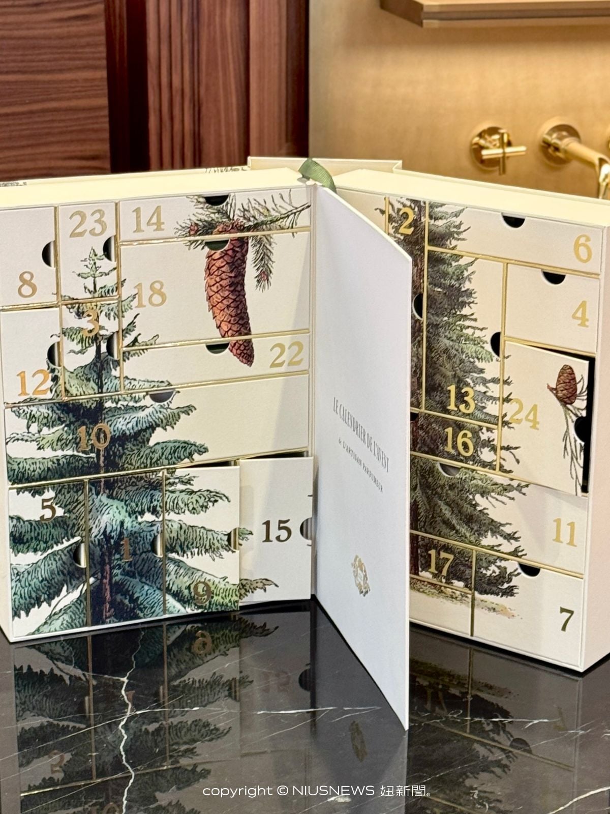來自法國的小眾香氛品牌L‘Artisan Parfumeur阿蒂仙之香,2025年聖誕節以冬季森林為主題,呼應品牌以植物靈感為發想創作的核心,推出聖誕倒數月曆,像書本設計的盒身彩繪著冷杉樹、松果等節慶元素,翻開來就像引領著大家一同走近夢幻冷杉林。