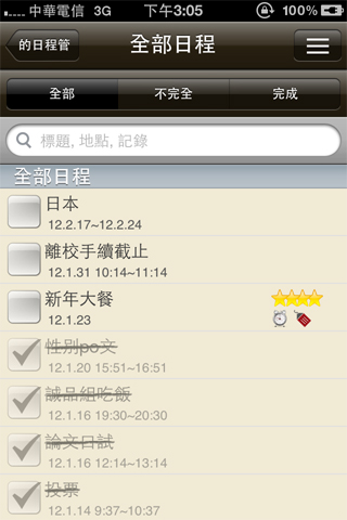 行事曆與清單記事互相結合,這種功能應該是大家求之不得的,能把每天密密麻麻的事情一一劃掉,大概是最過癮的事了!