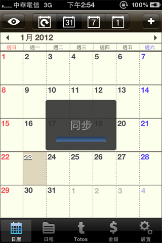 每回使用Totos Diary時,它會先自動同步現有的日曆內容,就算只是想試用的人也可以輕鬆擷取過去的資訊,不用從一片空白開始。