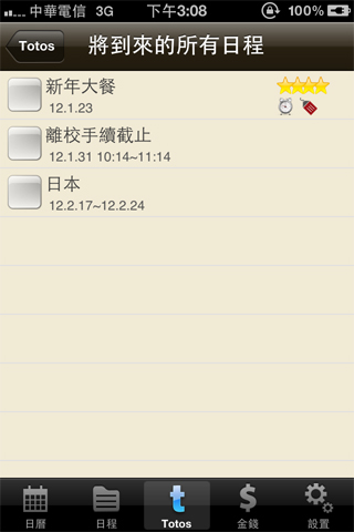 P.S.將事情一一劃掉的功能不只有Schedule中才有,Totos Diary也將之結合至Calendar中!