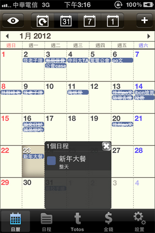 Totos Diary與一般行事曆最大的不同就是它結合了其他的功能,不敢說包山包海,但該包的Totos Diary都包了!