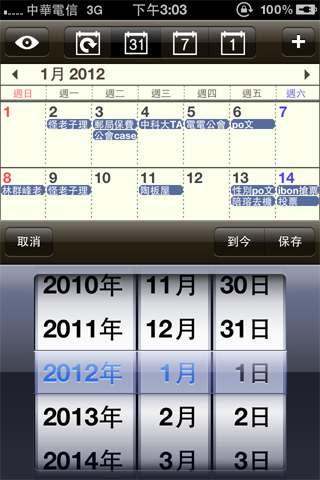 接下來有迴轉符號的標誌是可以直接以日期來做選取,更快速的跳到所要參閱的日期。