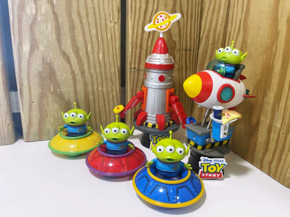 三眼怪公仔則有搖搖車、外星人三人組與飛碟,其中三人組共有三種手勢、四種表情包可換,可愛模樣讓人秒想到經典台詞「你救了我們,我們永遠感謝你」;而飛碟也可自行組裝,相當有趣味性!