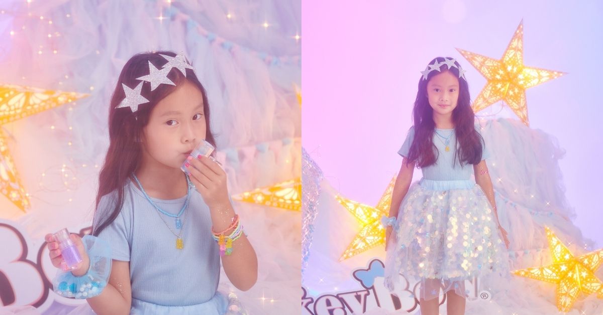 C.C.還是小學一年級新鮮人,就成為與品牌合作聯名系列的小小設計師,關穎讚美女兒擔任設計師很認真:「她自己對藝術和畫畫很有興趣,也很愛漂亮,這次她把自己對小朋友飾品的想法和創意,都有一直跟品牌溝通。她很高興可以參與,第一次設計東西,她覺得很好玩,也很開心。」這次CC也化身小仙女,以星星魔法棒為Monkey Bow新櫃點亮聖誕燈,真的是為品牌揮灑出夢幻可愛的超萌魅力。