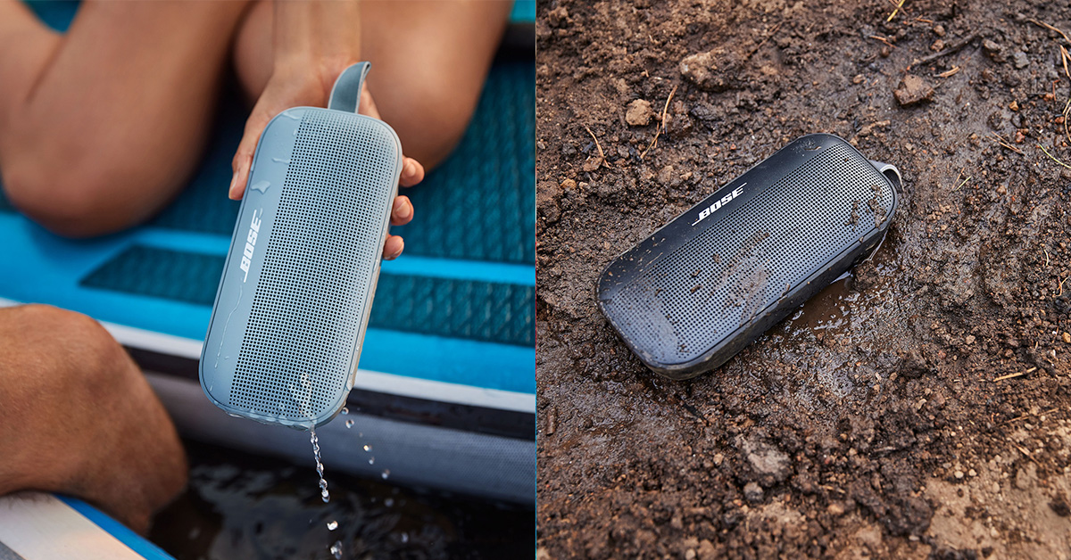 Bose SoundLink Flex具備IP67防水防塵等級,採用優質材料工藝、堅固耐用、不懼挑戰。柔軟的矽膠背板和粉末塗層的金屬格柵設計有效保護機身,使其能夠抵擋刮痕摩擦、承受掉落撞擊,並具有耐腐蝕及抗紫外線的特性。密封的聲學組件設計可防止灰塵和污垢進入機身,避免影響音質;SounLink Flex還可以在意外落入浴缸、泳池、海水中時浮起。耐用的掛環設計使SoundLink Flex可以輕鬆掛在登山扣或背包扣上,方便隨身攜帶,也可掛在浴室掛鉤或沙灘椅背上。Bose SoundLink Flex藍牙揚聲器長20cm、深5.3cm、高9.1cm,重量約為580克,外型精巧,除了易於單手操作、擁有極強便攜性的同時,也能夠巧妙地襯托不同傢俱風格。全新Bose SoundLink Flex藍牙揚聲器提供黑色、霧白、石墨藍三種配色選擇。