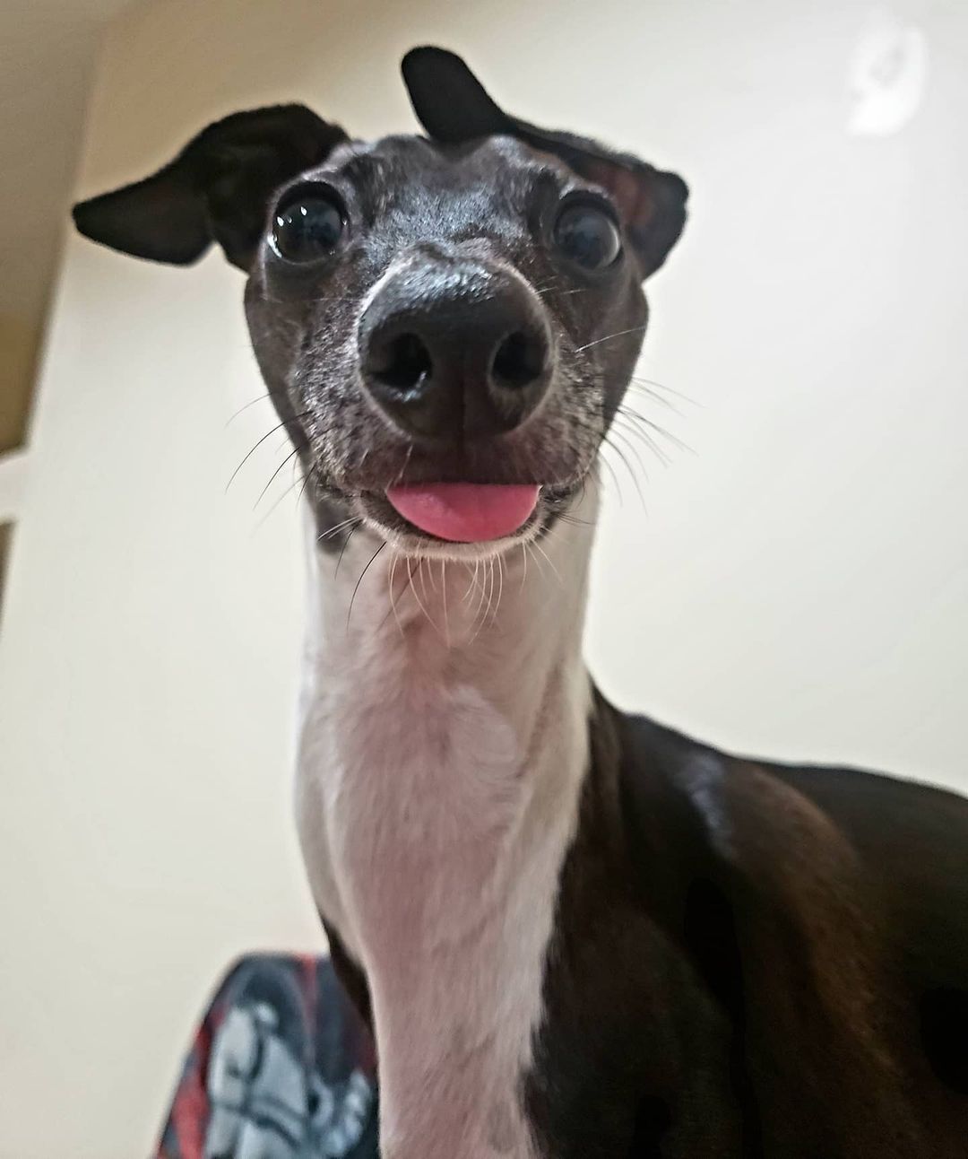 這隻來自美國的義大利靈緹犬名為「斯帕奇(Sparky),主人都說牠長得很像外星人!(臉尖尖、眼睛超大顆)Sparky非常活潑又好動,搭配調皮搗蛋的個性,常常把家裡弄得一團糟,牠會躍上桌子偷把雞腿叼走、把捲筒衛生紙咬得體無完膚,又或者將剛摺好的衣服一腳用亂!(聽起來極度欠揍XD)