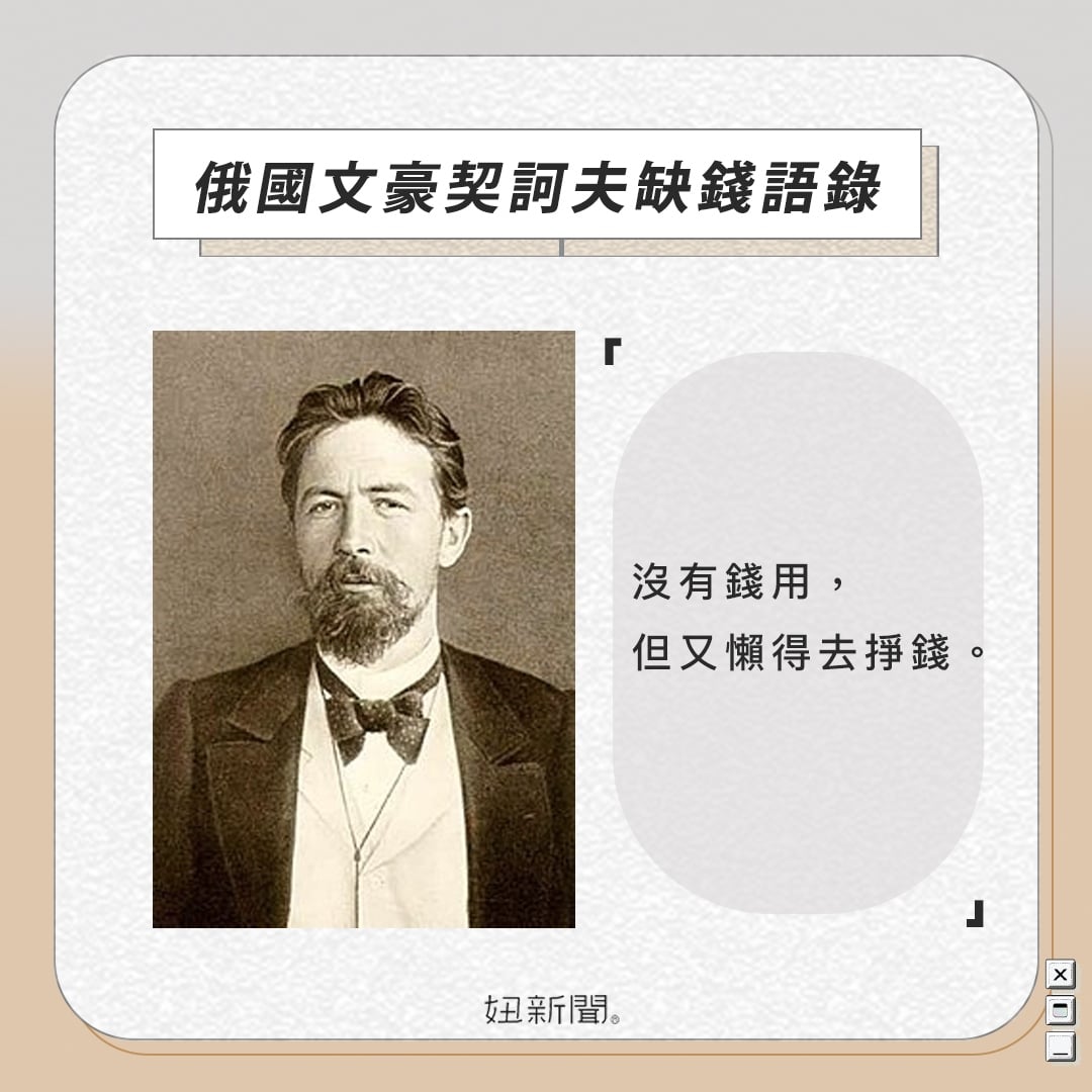契訶夫缺錢語錄3.「沒有錢用,但又懶得去掙錢。」