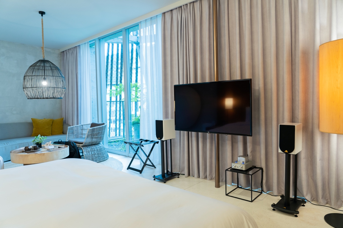 了了礁溪選用『平原房』與『森林房』作為體驗房型。平原房內的圓弧空間,視覺感遼闊,聲音包覆效果相得益彰;森林房窗外面對著森林公園,充滿綠意。房型特有的靜謐質感,更能襯托『騎士一號』的細膩層次,尤其適合播放人聲演唱與爵士樂,享受極致的聽覺體驗。