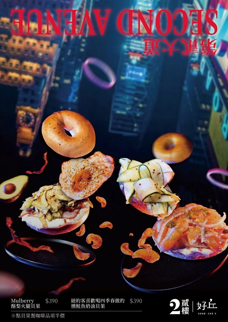 紐約擁有最輝煌的貝果文化底蘊、豐富多元的貝果選擇,貳樓以道地美式風格,不僅重現紐約客經典早餐,也打造出在地台灣口味的桃園華泰店限定餐點,這次與「好丘Good Cho’s」攜手合作,更透過美式餐點採用台灣道地品牌食材,來激盪全新的文化交融。好丘堅持只做台灣最好的貝果,以長時間低溫發酵,搭配獨特水煮烘焙法打造的貝果口感,一直是台灣貝果控心中的逸品,最適合打造道地美式貝果早午餐。同時,好丘以「好的人事物聚集成丘」為品牌精神,與貳樓以「美好就該接貳連三」兩品牌的核心價值不謀而合,都期待能將美好傳遞給更多的人。