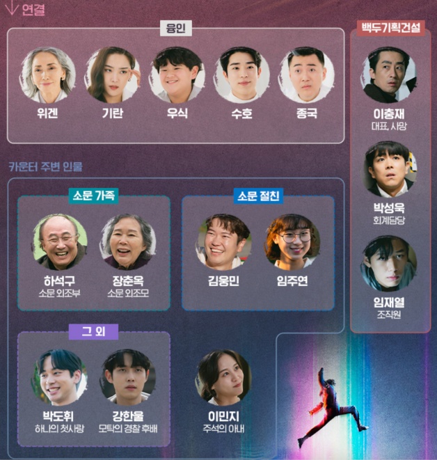另外還有《Move to Heaven:我是遺物整理師》尹柱相飾演蘇炆外公、《壞媽媽》李周實飾演蘇炆外婆、《紅天機》文淑飾演維根、《機智醫生生活》李贊炯飾演秀虎、《偉大的誘惑者》徐碧浚飾演哈娜初戀道暉、《有利的詐欺》李京民飾演姜瀚蔚等!