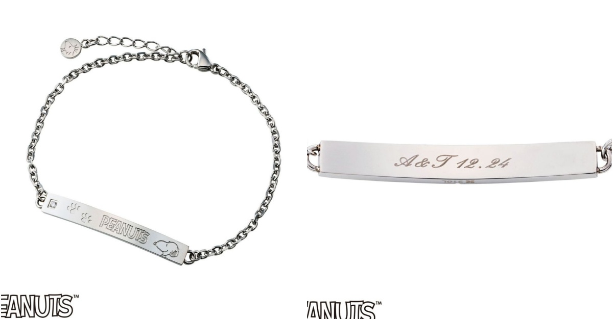 「特別的戒指~給特別的你~」紀念日對戒也要先經過小獵犬的加持才夠甜!一銀、一金配色的聯名對戒,戒指上刻上掩嘴偷笑的史努比以及PEANUTS字樣,同樣採用316L手術不銹鋼材質,內側還能免費客製化刻上名字、日期、訊息,是不是又萌又浪漫?