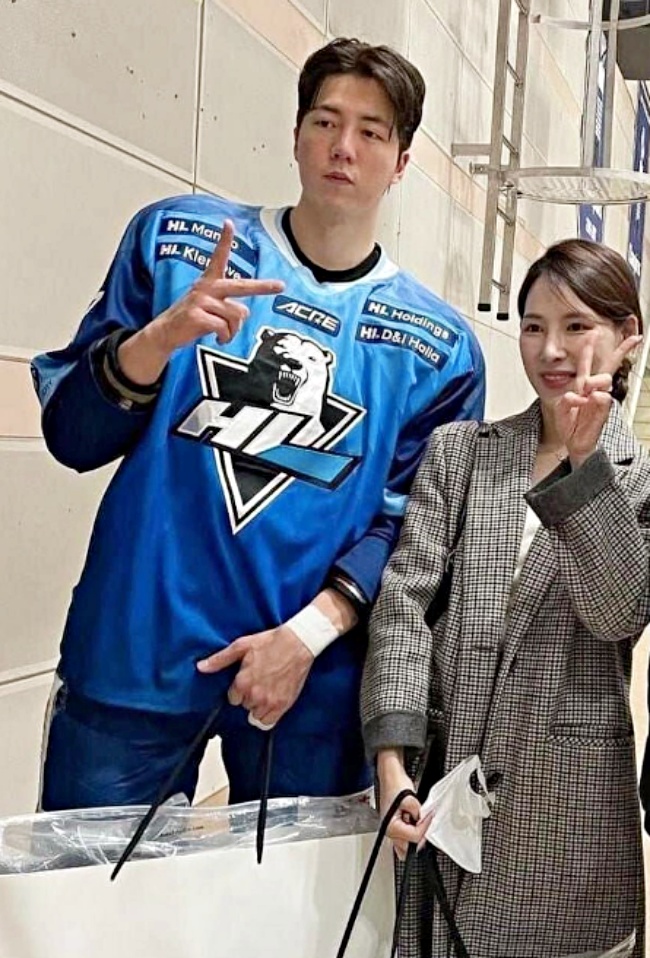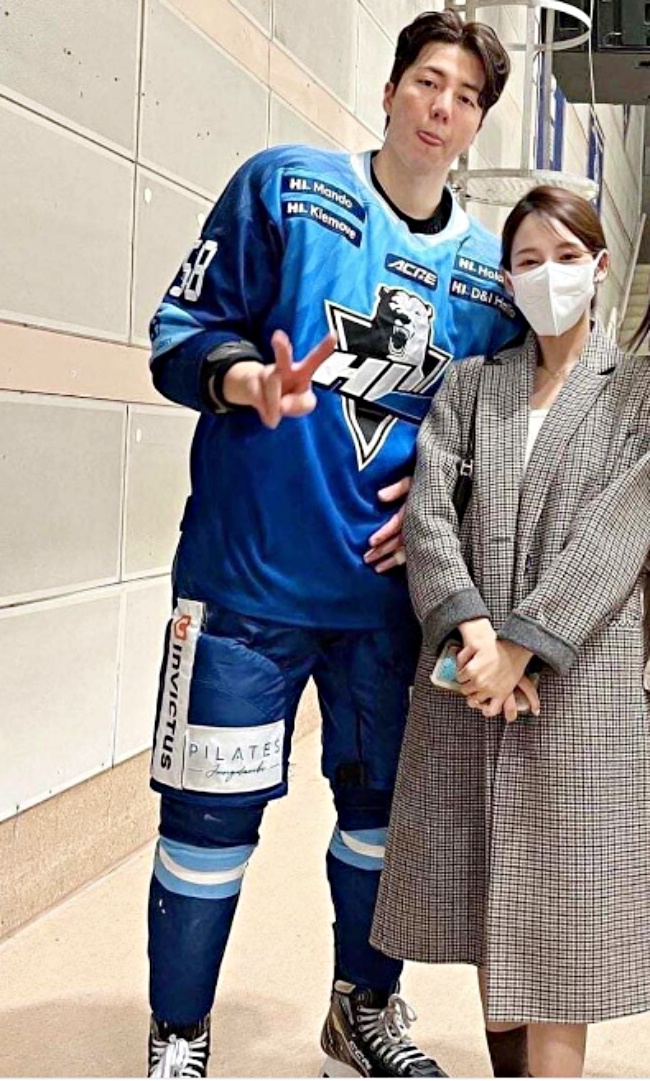 擁有186CM大長腿、精壯身材、帥氣臉蛋的熙頭,職業還是「冰上曲棍球選手」,他在這個週末6號,代表所屬的HL安養球隊,現身在韓國安養體育館舉行的「亞洲冰球聯賽」日、韓大賽賽場上,穿上藍色球衣、專業打球的英姿,吸引許多粉絲前來應援,其中在觀眾席上,就被發現出現了熟悉的面孔…