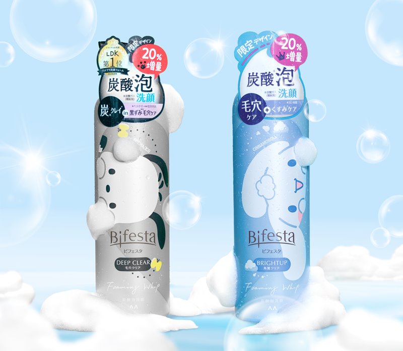 日本知名洗卸品牌Bifesta碧菲絲特,再次攜手三麗鷗推出人氣商品-碳酸泡洗顏的期間限定增量版!台灣5月初上市,各大藥妝通路即可購買,只要新台幣199元,就能輕鬆入手三麗鷗人氣角色的碳酸泡洗顏產品。聯名款的碳酸泡洗顏增量20%加量不加價,不只瓶身可愛還超划算!