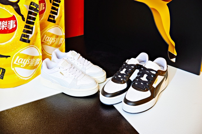想擁有以上2包洋芋片,請先收這雙!CA PRO復古厚底鞋分別有百搭奶油白以及黑白太極新色,結合經典復刻元素,以皮革鞋面、拼色設計打造而成,同時在鞋側加入燙金PUMA LOGO更增添其層次視覺;並於鞋頭加入孔洞設計,不用擔心皮革會悶、會熱,夏日出遊穿它依舊很OK。
