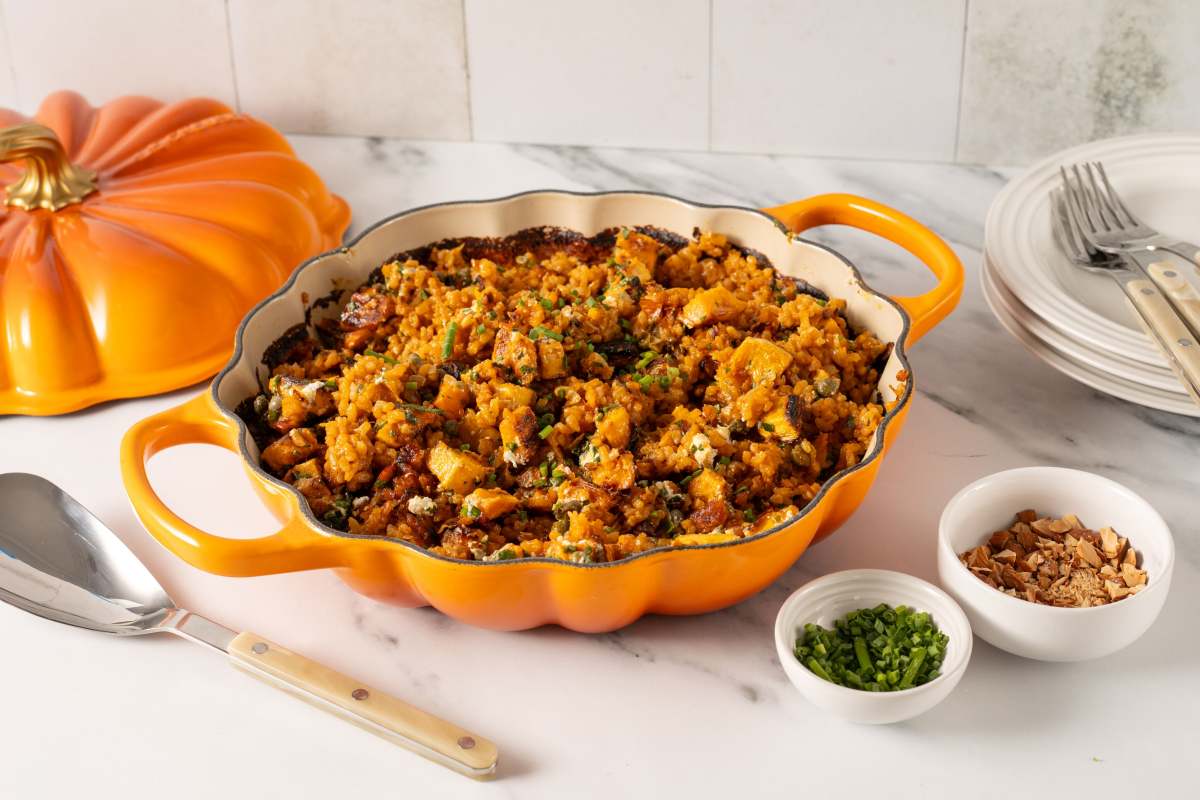 想要煮燉飯、義大利麵?今年還推出了淺底鑄鐵鍋,堪稱無水料理的首選!寬闊淺底的設計適合拌炒或擺放多樣食材,也可以用來烘焙南瓜派、造型糕點,讓萬聖節的餐桌料理更多樣澎湃。有橄欖綠、雪花白及珊瑚橘3色可選擇。