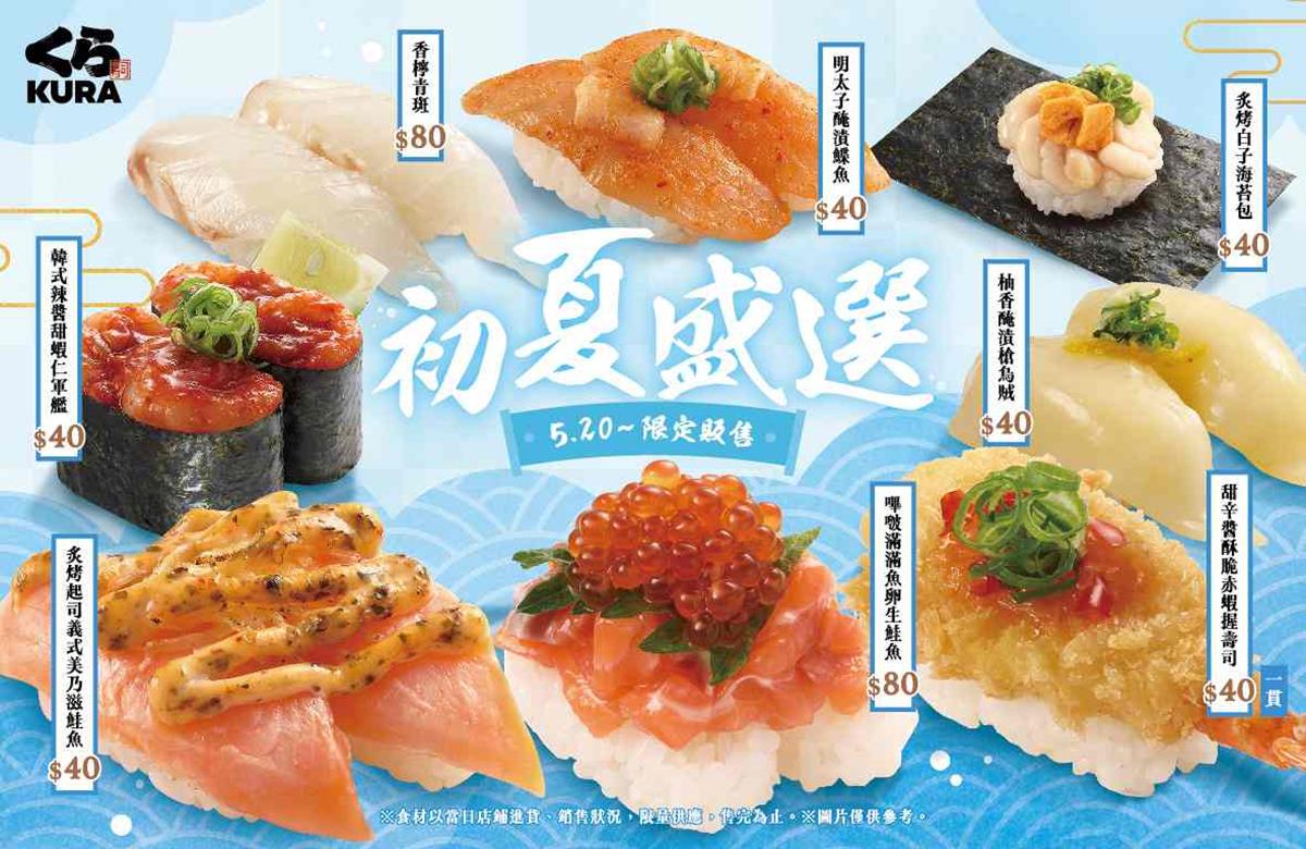 美味總讓人想一嚐再嚐,5 月 20 日起第二波新品強勢接檔。耗時3年養殖,肉質細緻又扎實富有口感的青斑,首次開賣新口味「香檸青斑」,獨家工法保留魚肉美味,佐以少許鹽帶出魚肉甜味,再加上檸檬片淡淡香氣,鮮美不可言喻,從台灣屏東產地直送門市。把握 5 月最後一波嗶啵樂趣,首次開賣「嗶啵滿滿魚卵生鮭魚」,在滿滿的鮭魚小山上面疊上滿滿的魚卵,就用這道料理表達對媽媽滿滿的愛吧!如果是甜辣味控,「甜辛醬酥脆赤蝦握壽司(一貫)」,鮮味多汁的酥脆赤蝦,搭配泰式甜辛醬,怎能不食指大動;歐巴、歐膩最佳的約會餐點「韓式辣醬甜蝦仁軍艦」,邊吃邊感受酸酸辣辣的愛情味道。「炙烤起司義式美乃滋鮭魚」濃郁的義式奶油,高溫炙烤逼出香氣,讓人一口接一口。「柚香醃漬槍烏賊」在 Q 彈肉感中,散發柚香氣味,雙重享受。「炙烤白子海苔包」濃郁的白子用特製醬油醃漬過後再炙烤,充滿香氣的美味用海苔包起來,一口入魂。