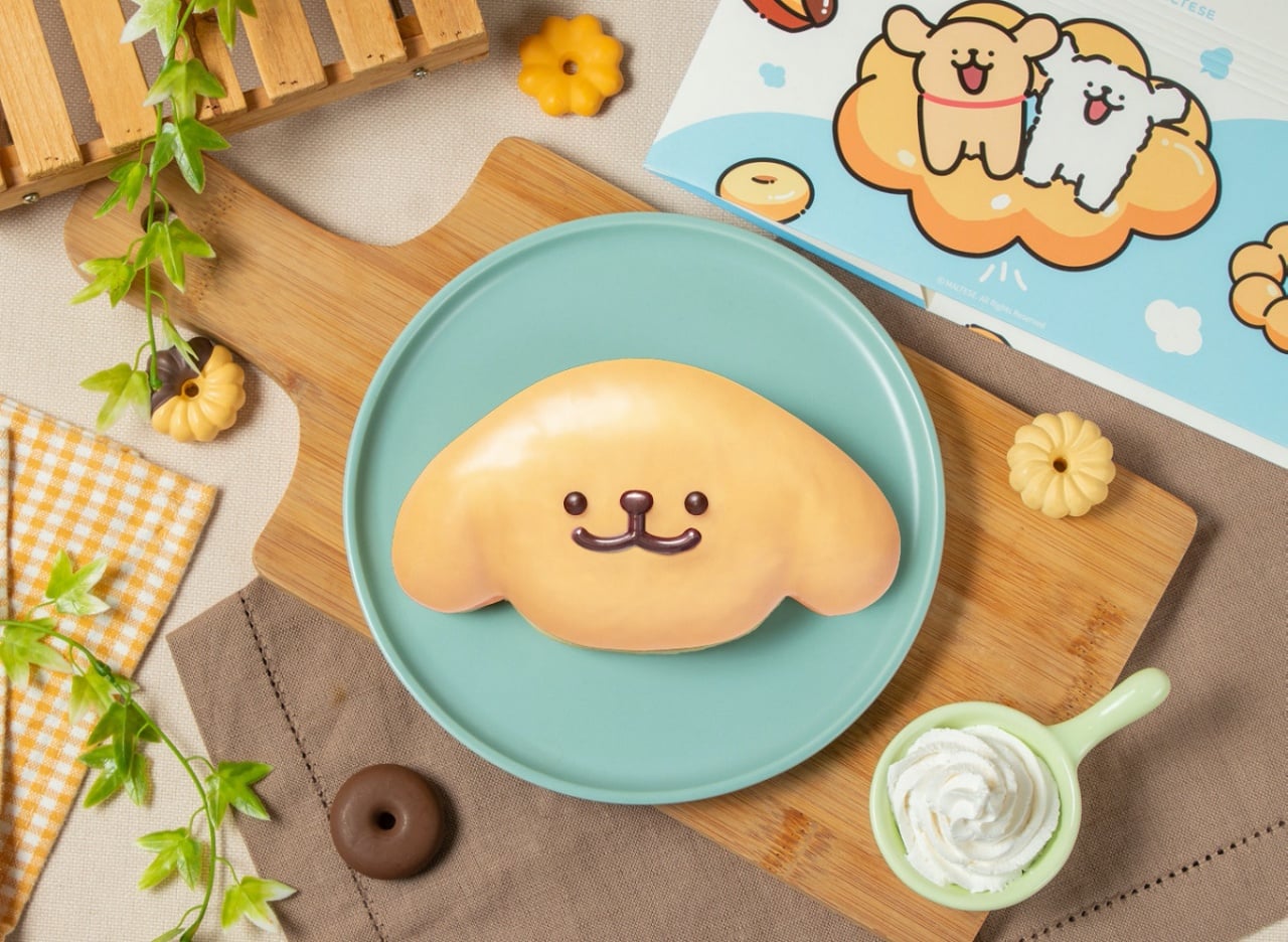 「汪!馬爾濟斯小狗甜甜圈」將蓬鬆巧貝裹上白可可沾醬,並擠入苦甜可可鮮奶油,讓人見人愛的活潑小白化身超萌甜甜圈,真的好欠吃!