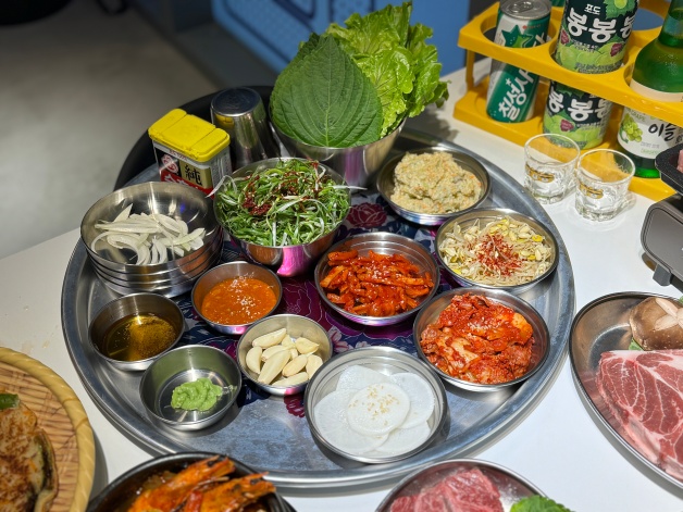 「嗨某尼花盤」的嗨某尼顧名思義就是韓文「奶奶」的諧音,選用超經典韓式花盤盛裝,滿滿的手作小菜盤,包含經典小菜、新鮮生菜、多種沾醬,讓妞妞們像在奶奶家一樣吃到飽(OS:有種餓叫阿嬤覺得你餓),搭配各式烤肉也吃不膩!