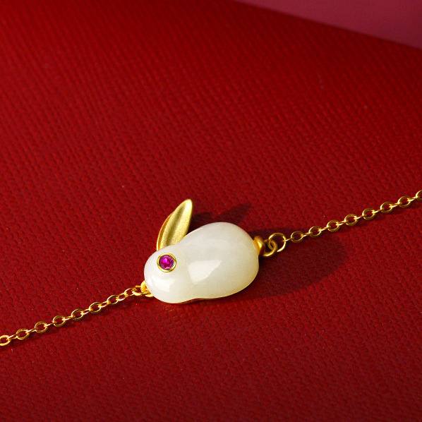 2023迎新春好運小奢華玉兔手鍊,很法式的乳白色,用寶石點綴兔子眼睛,手工磨製東方文化高尚的玉,讓福兔相伴,好運相隨,999足銀高級手工製作,親膚抗敏,高級銀K金不怕掉色,好運一整年!