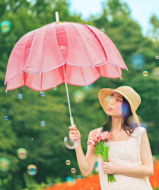 大家應該對於宮崎駿電影《龍貓》中,大龍貓在雨中撐起「葉子雨傘」的可愛畫面印象深刻吧?現實中,單薄的葉子可能不太實用,但你現在可以秒化身花精靈「在超巨花朵下躲雨」!