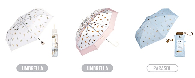 以貓讓人微笑(Funny Cat)為主題,打造2支雨傘1隻陽傘,寶寶藍、櫻花粉以及透明的清爽、粉嫩配色已經夠可愛,傘面、傘套上面還印滿了貓星人的逗趣瞬間,猙獰(?)地張開嘴巴叫、奇怪姿勢跳躍、歪頭撲倒等,絕對讓貓奴們會心一笑。