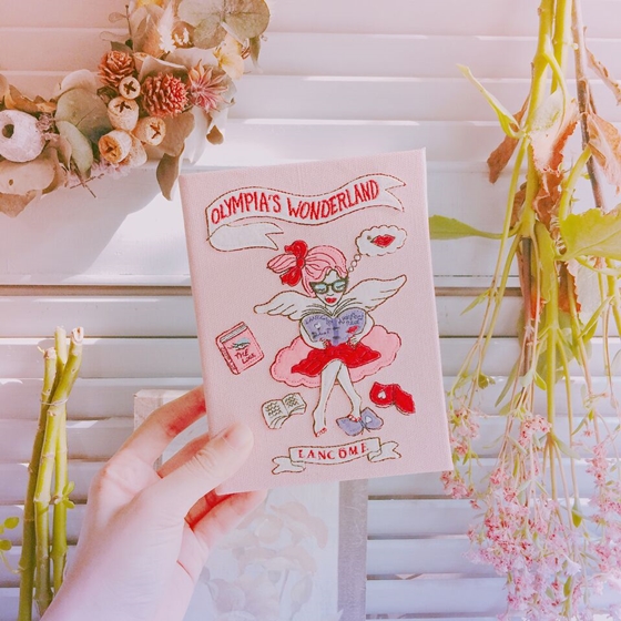 繽紛色彩的眼唇頰彩躍進棉質刺繡經典手拿包,成就一本令人愛不釋手的時尚藝術品。封面是手工縫製的小天使,靈感來自於品牌創辦人Armand Petitjean在1935年將這個小天使選為Lancôme象徵,是品牌經典識別「玫瑰」的前身,Olympia透過天使向品牌歷史致敬;彩盤兩側鑲滾著金邊,如同經典著作般極具收藏性。