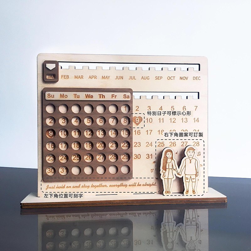 為了避免和其他人撞到同款立體桌曆,妞編輯推薦這款獨一無二「客製化木製萬年曆」,妞妞們可以在右下角自己選擇插畫圖案、左下角及背後底部則可以刻字,更貼心的是特別日子還能加上心形註記,如此一來就不怕會忘了交往紀念日的問題啦(討揍XD),目前共推出「深紫、灰藍、墨綠、胡桃」共4種洞洞板顏色。