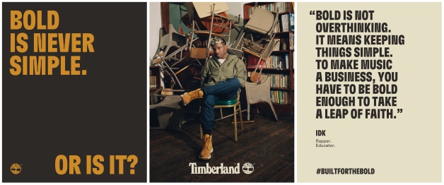 本次企劃的創意汲取過往Timberland廣告的靈感,這些歷史廣告多年來因其前瞻、大膽和玩世不恭的態度受到關注。從廣告到零售層面的創意執行,Built for the Bold都與頂尖合作夥伴共同完成,其中包括創意品牌諮詢公司INDUSTRY及創意單位Rosie Lee,影片則由獲獎導演Iggy London執導。
