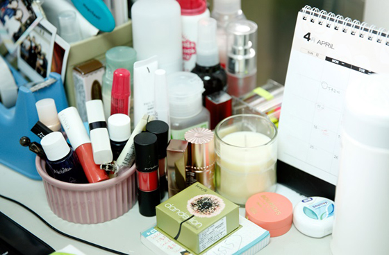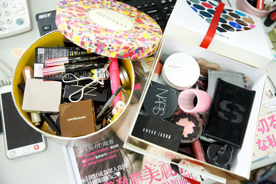 美容編輯需要試用最新的美妝保養產品,因此在桌邊總是擺放著各式各樣的新品,隨時隨地需要試用以及評鑑新品,所有在編輯部辦公室絕對能搜尋到大家最想獲得的新品訊息。