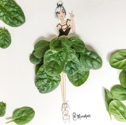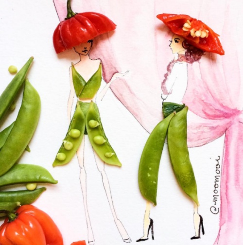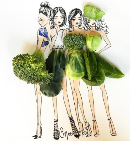 你以為花朵是因為夠夢幻才能當服裝元素,你就錯了!花椰菜、紅椒、豌豆一樣可以搭出時尚穿搭!(菜家也能出美女XD)