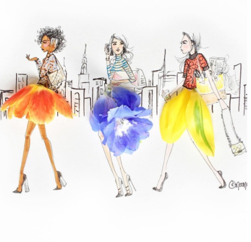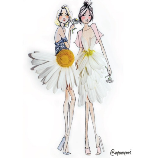 巧妙地將花朵融入筆下模特兒的裙擺裡,說這只是插畫家我不相信,根本可以當服裝設計師了吧!