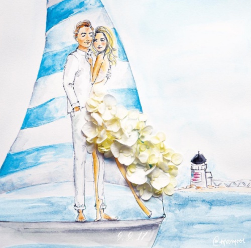 就連他出國度假,也會隨手紀錄看到的所思所感~因為看到一對可愛的情侶在船上拍婚紗,他就將他們給畫下來,還引來女生本人來回覆呢!(這對情侶實在太幸運惹,花朵婚紗根本超美)