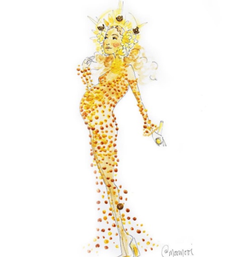 他近期也以在葛萊美獎中挺著孕肚表演的碧昂絲作為靈感,畫了人物插畫~完全把女神的姿態傳達得唯妙唯肖啊,超美的!