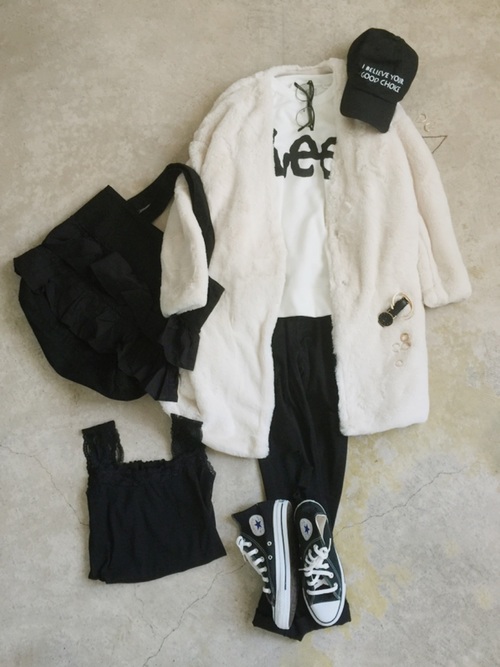 白色的look要怎樣穿得俐落帥氣?當然是跟黑色搭配決不會出錯~如果覺得休閒的白T以及帆布鞋不夠有份量感,毛海材質的外套能讓整體穿搭立馬存在感十足~