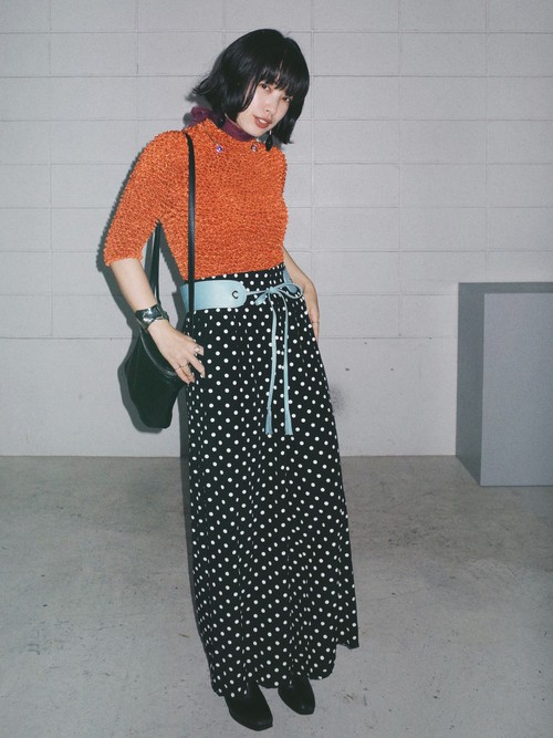 圓點、寬腰帶、領巾,亮色系毛衣要穿得有型可以考慮復古風格的搭配,像是這些簡單的小配件也可以讓毛衣變得更有特色~
